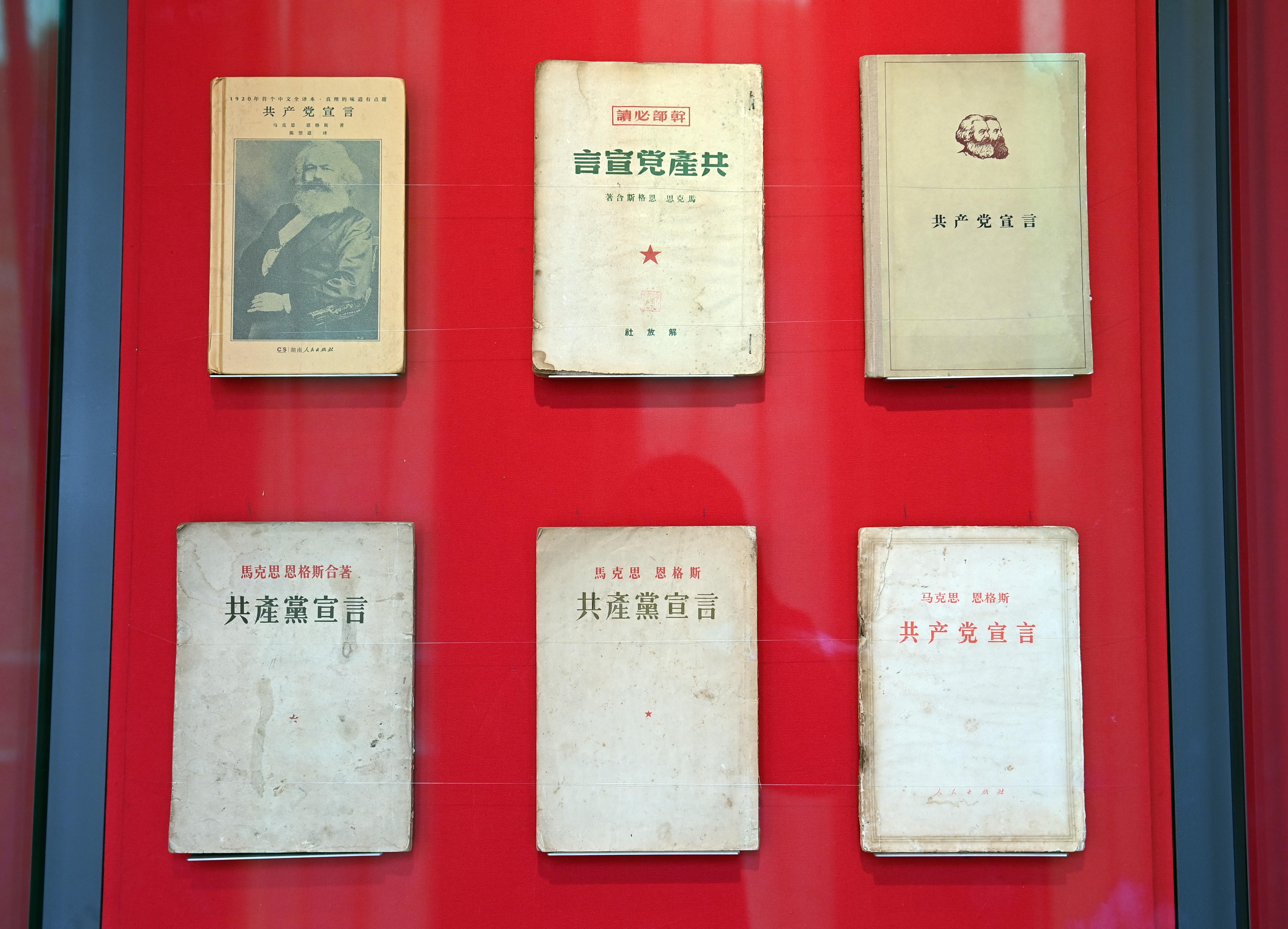 △中國國家版本館中央總館展示的不同版本的《共產(chǎn)黨宣言》。