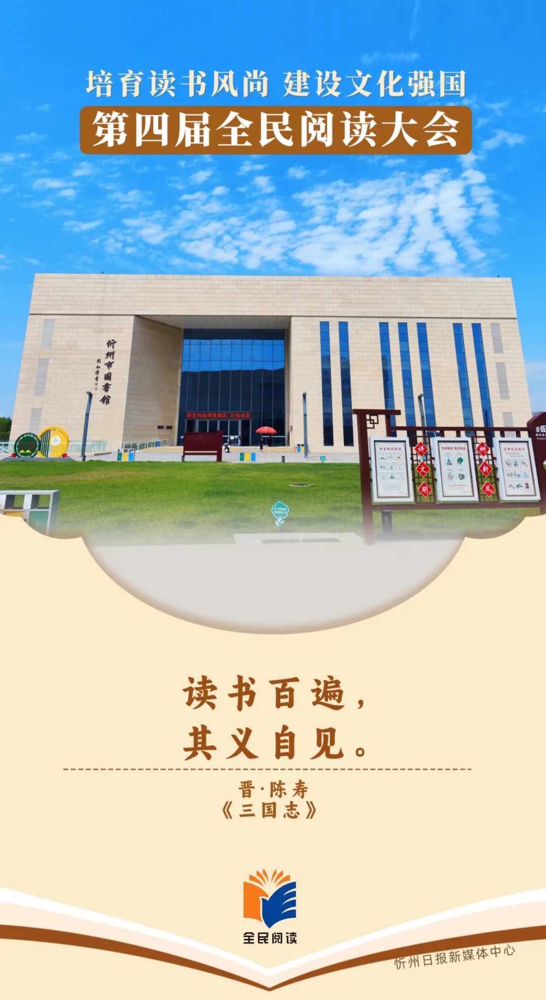 第四屆全民閱讀大會(huì)將于4月23日至25日在太原市舉辦。大會(huì)由中共中央宣傳部、中共山西省委、山西省人民政府主辦,以“培育讀書風(fēng)尚 建設(shè)文化強(qiáng)國(guó)”為主題,旨在通過(guò)全民閱讀構(gòu)筑共有精神家園,提升社會(huì)文明程度,為以中國(guó)式現(xiàn)代化全面推進(jìn)強(qiáng)國(guó)建設(shè)、民族復(fù)興偉業(yè)提供文化滋養(yǎng)和精神力量。