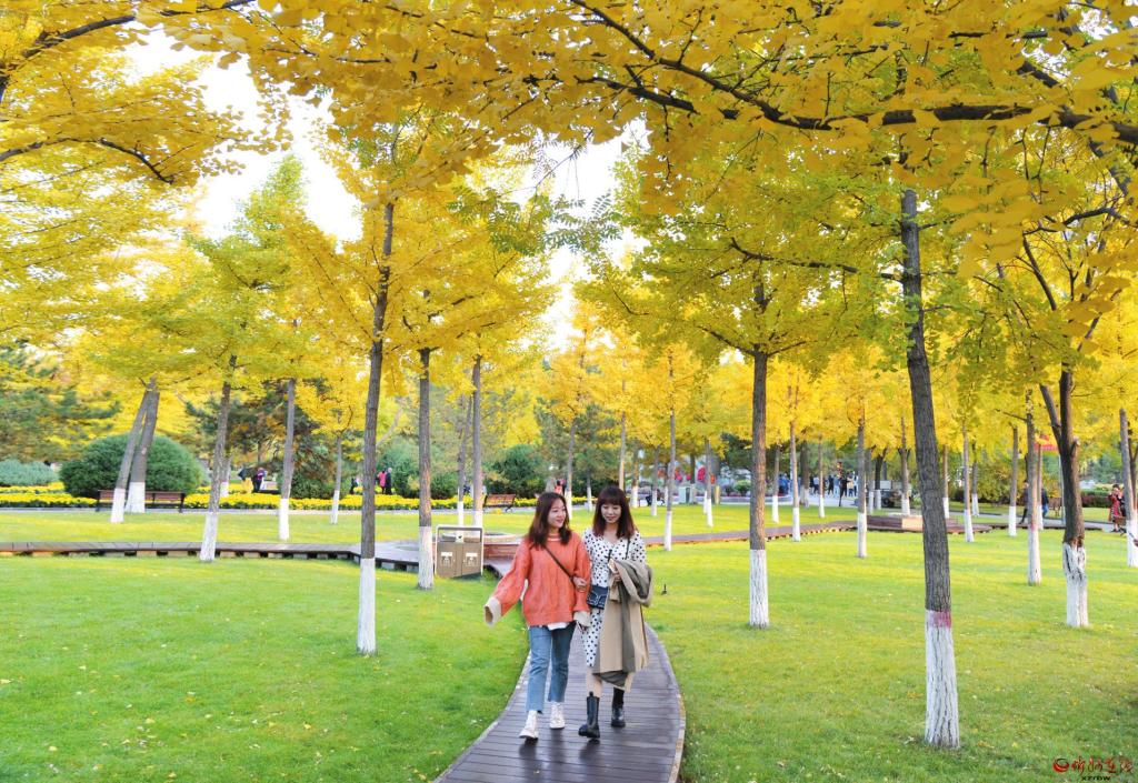 深秋時(shí)節(jié),忻州城區(qū)隨處可見花成帶、綠成片、樹成景的優(yōu)美風(fēng)景線。近年來(lái),我市不斷推進(jìn)城市綠化,提升綠化檔次,極大改善了人居環(huán)境。圖為游客徜徉在人民公園銀杏林內(nèi)。 (張存良 攝)