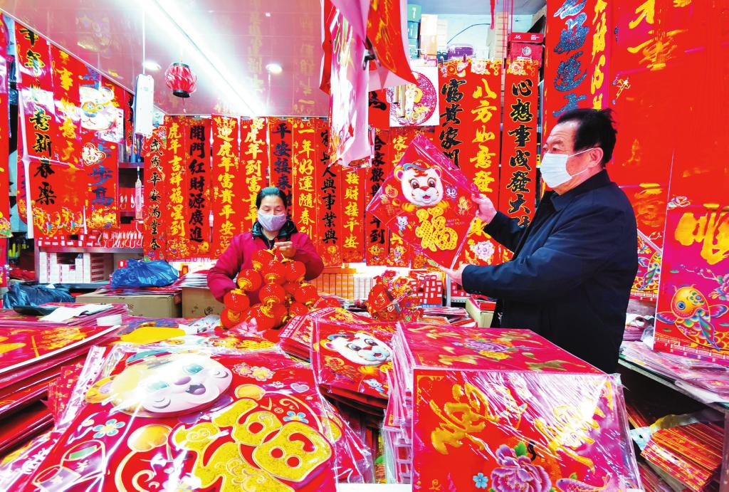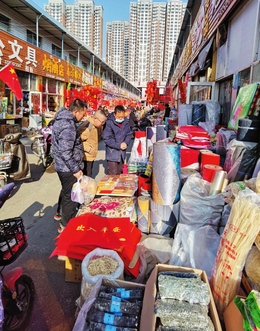 市場(chǎng)內(nèi)各種商品琳瑯滿目,讓人目不暇接。煙酒糖茶、禽、蛋、蔬菜、辦公用品、生活用品,應(yīng)有盡有。一位商戶說:最近受疫情和網(wǎng)購的影響,生意沒有以前好做了,但市民購買熱情依然高漲,進(jìn)入臘月以來,生意一天比一天好了起來。據(jù)了解,市場(chǎng)內(nèi)各商戶認(rèn)真做好疫情防控工作,及時(shí)對(duì)場(chǎng)地進(jìn)行消殺,努力營(yíng)造一個(gè)安全祥和的購物環(huán)境。市場(chǎng)上到處充滿著年味,尤其是紅彤彤的春聯(lián)和喜氣洋洋的福字最為搶眼。(王國(guó)棟 攝影報(bào)道)