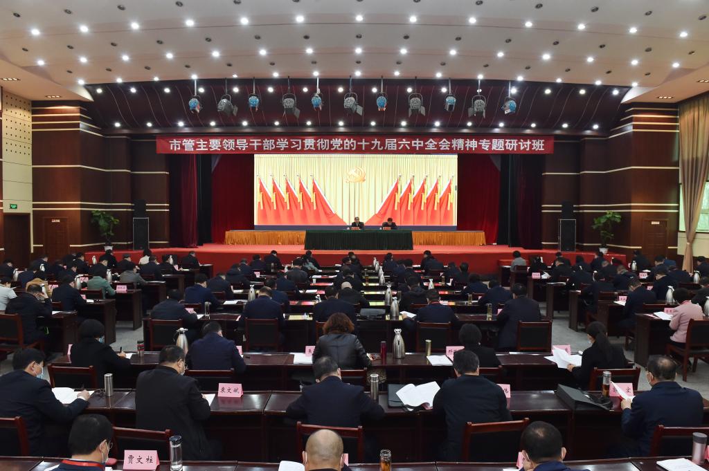 朱曉東指出,黨的十九屆六中全會是在中國共產(chǎn)黨成立100周年的重要?dú)v史時刻,在黨和人民勝利實(shí)現(xiàn)第一個百年奮斗目標(biāo)、全面建成小康社會,正在向著全面建成社會主義現(xiàn)代化強(qiáng)國的第二個百年奮斗目標(biāo)邁進(jìn)的重要?dú)v史關(guān)頭召開的一次具有里程碑意義的重要會議,對推動全黨統(tǒng)一思想、統(tǒng)一意志、統(tǒng)一行動具有重大而深遠(yuǎn)的影響。全會通過的《中共中央關(guān)于黨的百年奮斗重大成就和歷史經(jīng)驗(yàn)的決議》,是一篇光輝的馬克思主義綱領(lǐng)性文獻(xiàn),是新時代中國共產(chǎn)黨人牢記初心使命、堅(jiān)持和發(fā)展中國特色社會主義的政治宣言,是以史為鑒、開創(chuàng)未來、實(shí)現(xiàn)中華民族偉大復(fù)興的行動指南,必將激勵全黨錨定既定奮斗目標(biāo)、意氣風(fēng)發(fā)走向未來。全市上下要深刻認(rèn)識黨的十九屆六中全會的歷史地位,認(rèn)真學(xué)習(xí)領(lǐng)會、堅(jiān)決貫徹落實(shí),進(jìn)一步把學(xué)習(xí)貫徹黨的十九屆六中全會精神引向深入。主要領(lǐng)導(dǎo)干部要深入研讀和領(lǐng)會黨的十九屆六中全會決議,從黨史中汲取經(jīng)驗(yàn)啟迪智慧、找尋“精神密碼”,帶頭答好大量亟待回答的理論和實(shí)踐課題,帶頭從新時代黨的創(chuàng)新理論中探尋實(shí)踐路徑。