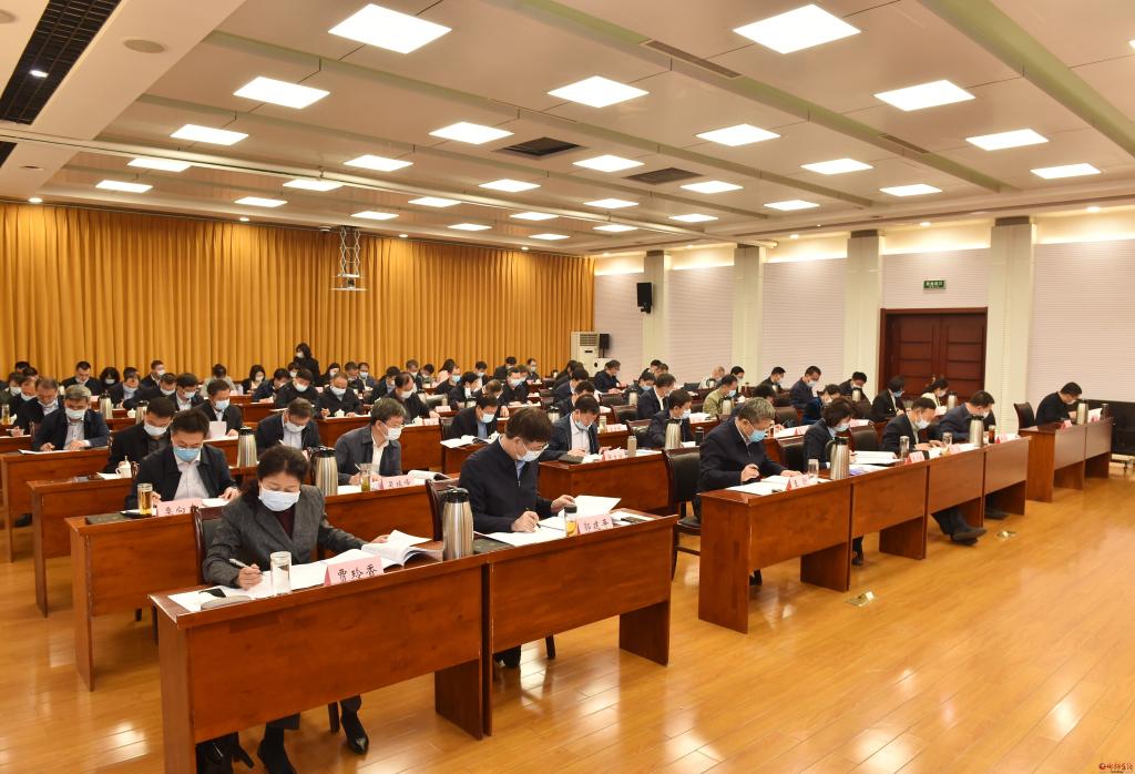 會議會場。馮曉磊 攝 4月11日,市委中心組(擴大)學習會召開,深入學習貫徹習近平總書記關于加強基層治理體系和治理能力現(xiàn)代化建設的重要論述,并進行了第二次現(xiàn)場政策測試。市委書記朱曉東主持會議并講話。市委副書記、市長李建國,市委副書記、政法委書記郭奔勝,市人大常委會主任王珍,市政協(xié)主席范建民,市領導劉卓良、劉瑞生、溫建軍、張敏、張宇光等出席。