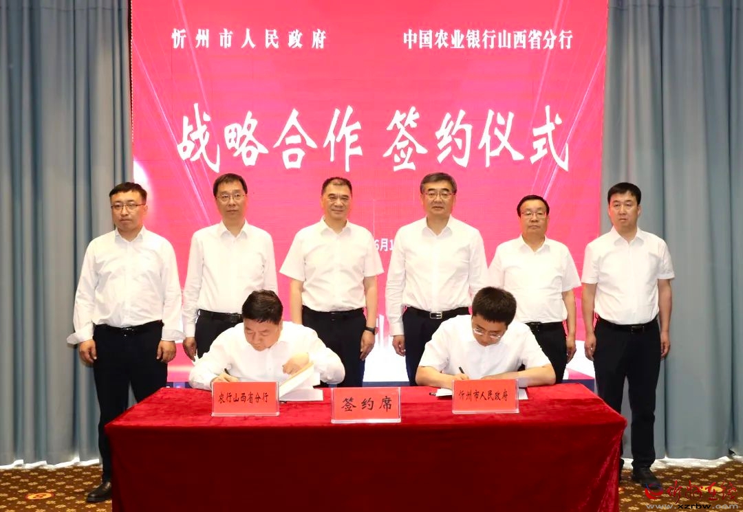6月10日,忻州市人民政府與中國農(nóng)業(yè)銀行山西省分行簽署戰(zhàn)略合作協(xié)議。市委副書記、市長李建國,農(nóng)行山西分行黨委書記、行長安靜東出席簽約儀式并致辭。副市長李碩,農(nóng)行山西分行黨委委員、副行長董中華代表雙方簽約。市政府秘書長張艮生,農(nóng)行山西分行相關(guān)負(fù)責(zé)人,市直相關(guān)部門負(fù)責(zé)人等共同見證簽約。
