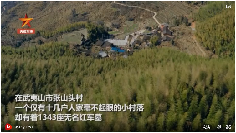 福建張山頭村竹林中,有1343座無(wú)名紅軍墓,每座墓僅一根紅飄帶、一個(gè)編號(hào)做標(biāo)記。革命戰(zhàn)爭(zhēng)年代,這里曾是閩北蘇區(qū)紅色首府所在地的中心地帶,不少傷病員在村里的紅軍中醫(yī)院療養(yǎng)。敵人“圍剿”,藥品不足,斷米斷菜,很多將士犧牲了,村民就把他們?cè)嵩卺t(yī)院后方,3塊青磚做墓門。為保護(hù)家人,這些紅軍沒(méi)有留下名字……(胡渝 任超 張馨尹)