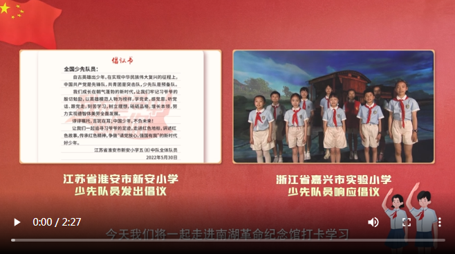 現(xiàn)代快報(bào)訊(記者 于露 王新月)2022年5月30日,是江蘇省淮安市新安小學(xué)少先隊(duì)員們收到習(xí)近平總書記回信一周年的日子。近日,他們向全國(guó)少先隊(duì)員發(fā)出“跟著習(xí)爺爺?shù)淖阚E學(xué)黨史”的倡議。浙江省嘉興市實(shí)驗(yàn)小學(xué)的少先隊(duì)員們第一時(shí)間響應(yīng)倡議,追尋習(xí)爺爺?shù)淖阚E,打卡南湖革命紀(jì)念館,講述紅色故事,傳承紅色精神。