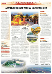 從“南風歌”回蕩岸畔、“萬里行”精益求精,到運城市聚焦鹽文化的傳承,盬鹽古韻再詠新聲。這一靜臥在河東大地上的瀲滟銀泊連接著過去與未來,讓“同飲黃河水、共食河東鹽”的文化認同再次激活,讓鹽湖的歷史文化價值在新時代得到充分彰顯。
