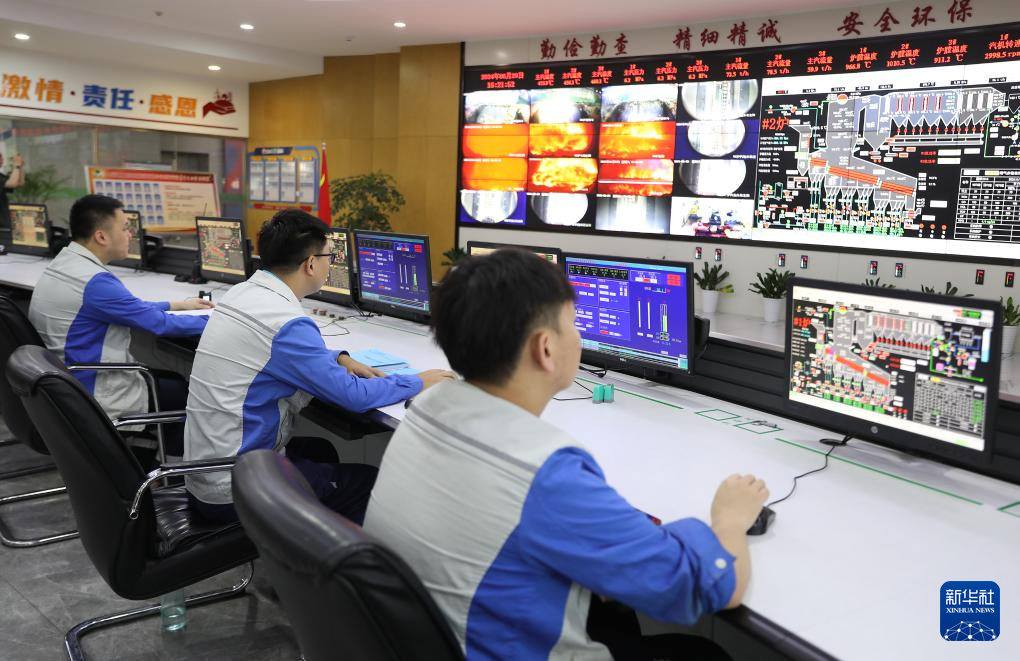 6月29日,在江西南昌固廢處理循環(huán)經(jīng)濟產(chǎn)業(yè)園,生活垃圾焚燒發(fā)電項目的工作人員在中控室監(jiān)控設備運轉(zhuǎn)情況。新華社記者 杜瀟逸 攝