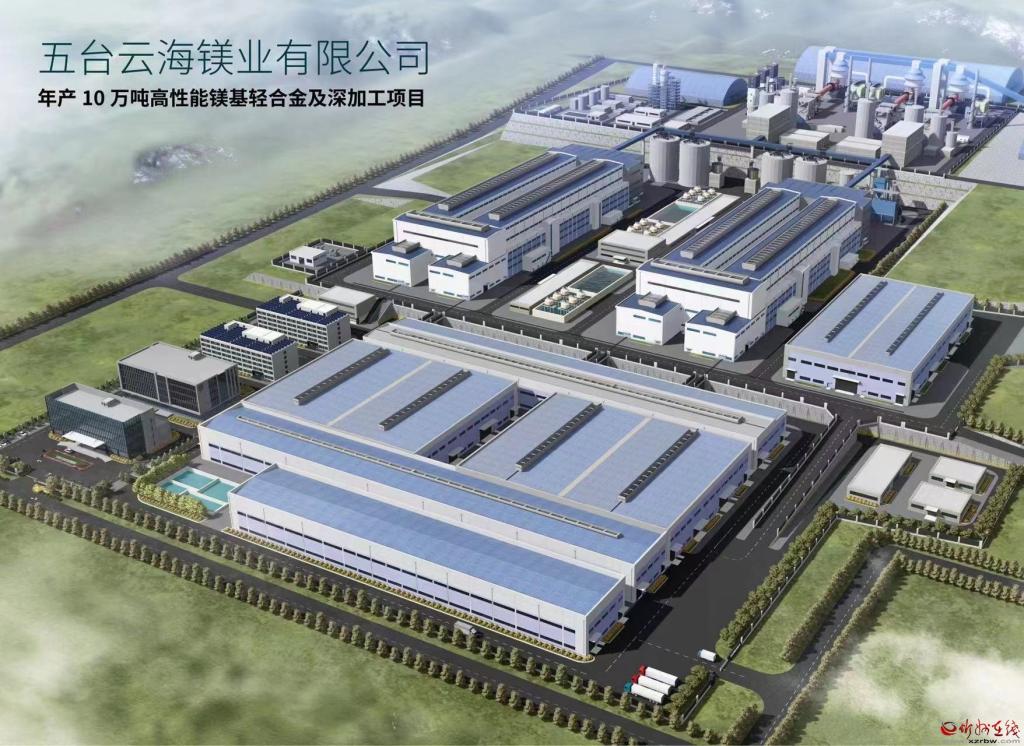 五臺(tái)云海鎂業(yè)年產(chǎn) 10 萬(wàn)噸高性能鎂基輕合金及深加工項(xiàng)目效果圖 。