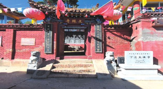 下莊文殊寺位于五臺縣東雷鄉(xiāng)下莊村中,始創(chuàng)年代不詳,現(xiàn)存建筑為明代所建。寺廟坐北向南,占地面積368平方米。山門一間,中置板門。正殿面寬三間、進深五椽,前出廊(此走廊屬清代遺構(gòu),為后期加接),廊柱施斗拱,大斗口內(nèi)出跳,兩側(cè)帶有雕花翼拱。檐柱頭斗拱為五踩,其下昂已被鋸掉(現(xiàn)存昂嘴為清代更換的如意昂式);平身科斗拱亦為五踩。當心間設(shè)門,兩次間設(shè)直欞窗。