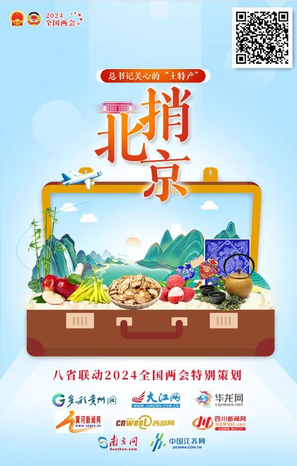 2024年全國(guó)兩會(huì)召開之即,多彩貴州網(wǎng)、西部網(wǎng)、華龍網(wǎng)、四川新聞網(wǎng)、中國(guó)江蘇網(wǎng)、黃河新聞網(wǎng)、大江網(wǎng)、南方網(wǎng)八省市媒體聯(lián)合推出《總書記關(guān)心的“土特產(chǎn)”捎北京》。
