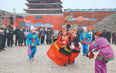 河曲縣古城堡下的雙龍舞展演。張玉明攝