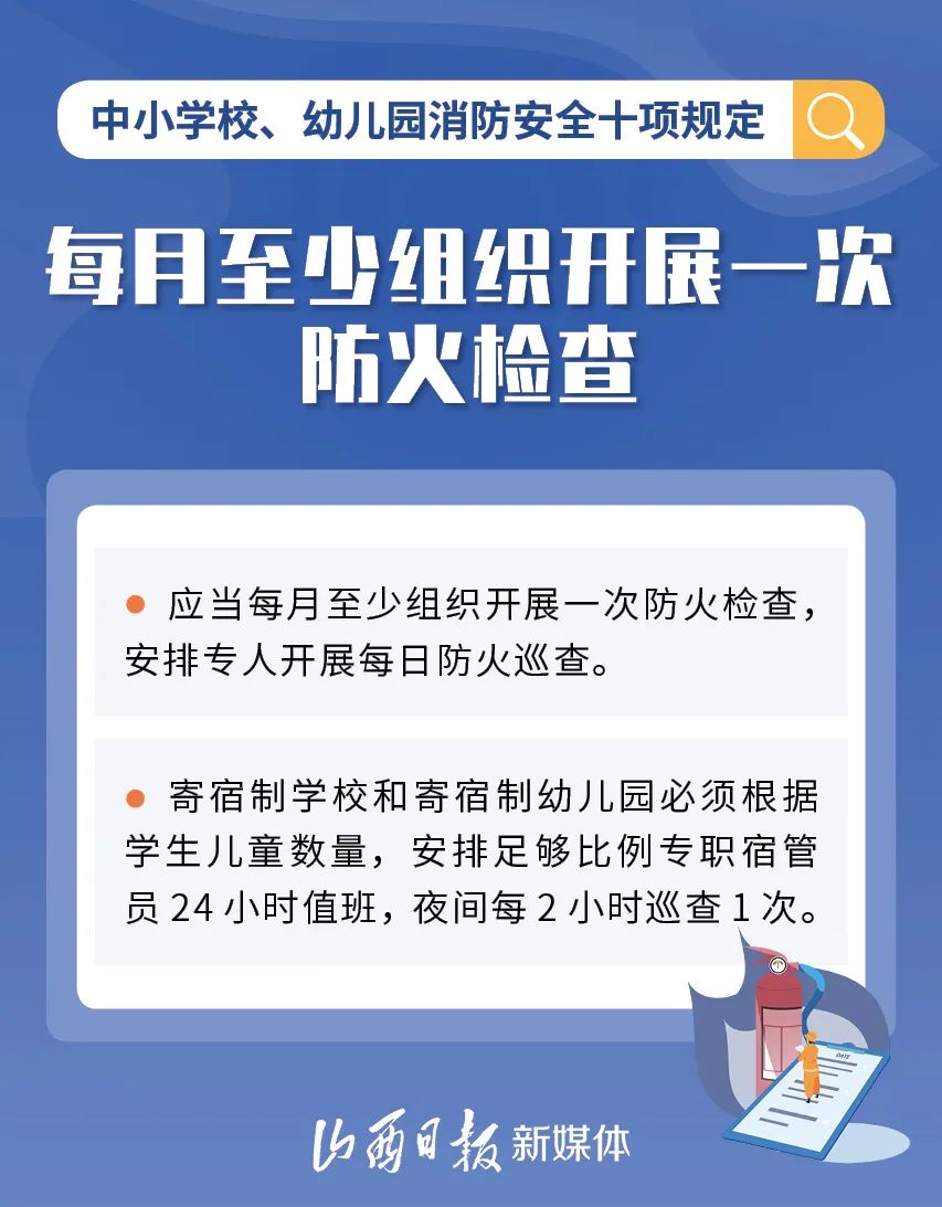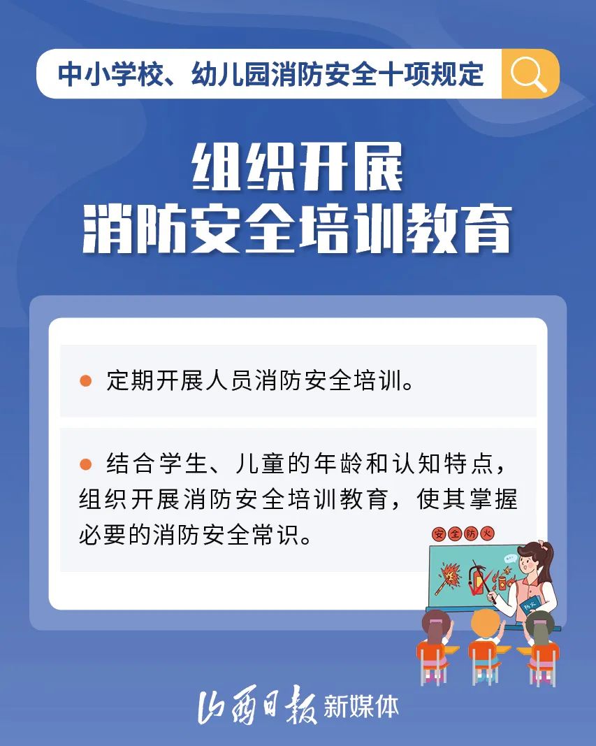 為加強中小學校、幼兒園消防安全管理,近日,教育部、國家消防救援局研究制定了《中小學校、幼兒園消防安全十項規(guī)定》,具體規(guī)定內容如下。