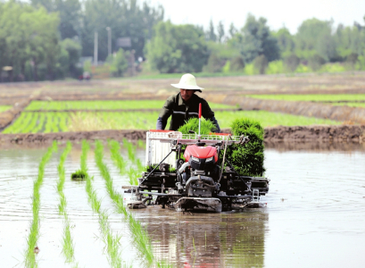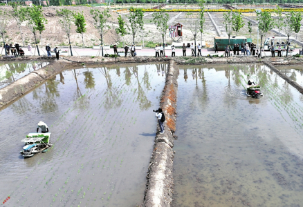 5月28日,太原市晉源區(qū)晉祠水稻插秧節(jié)在稻田公園舉行?;顒蝇F場,機器轟鳴、水波蕩漾,自動化插秧機勻速前進,水田里留下一簇簇新綠。卷褲腳、戴草帽、踏稻田、插秧苗、踩泥巴、捉魚蝦……一群群研學的孩子分批下田,感受手工插秧的樂趣,細嗅農耕勞作的氣息。田埂上圍觀群眾的加油聲、喝彩聲不絕于耳,現場一片熱火朝天。