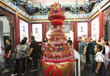 掃描二維碼觀看相關(guān)視頻。 拍攝:范璐 制作:李永江李浩瑜郝芳敏 8月23日,“樂(lè)享非遺面向未來(lái)”2024中國(guó)非遺面食大會(huì)在太原開(kāi)幕。大會(huì)通過(guò)中國(guó)非遺面食技藝秀、中國(guó)面塑藝術(shù)展、百店百面非遺美食周等主題活動(dòng),全面展示中國(guó)面食文化的博大精深,創(chuàng)新傳承非遺面食技藝,現(xiàn)場(chǎng)人氣爆棚。大會(huì)將持續(xù)至9月8日。 同時(shí),大會(huì)通過(guò)開(kāi)展非遺面食展銷、體驗(yàn)品鑒、惠民活動(dòng)等,創(chuàng)新消費(fèi)場(chǎng)景,讓市民和游客在煙火氣中感受非遺面食的魅力,領(lǐng)略中華優(yōu)秀傳統(tǒng)文化。 面食技藝秀上演花樣競(jìng)技 匠人群眾實(shí)現(xiàn)“主客共享” 23日晚,2024中國(guó)非遺面食大會(huì)在太原工人文化宮廣場(chǎng)開(kāi)幕。由106家餐飲企業(yè)共同制作完成的花饃、栲栳栳等106種非遺面食、特色美食在“熱氣騰騰”的蒸籠內(nèi)來(lái)了個(gè)大薈萃。中國(guó)烹飪協(xié)會(huì)副會(huì)長(zhǎng)張曉文、山西省文化和旅游廳廳長(zhǎng)王愛(ài)琴、中國(guó)烹飪大師名人堂尊師劉當(dāng)成、中國(guó)晉菜大師王保衛(wèi)共同上臺(tái)“揭籠”,并傳遞到新一代面食傳承人、山西面食名師楊剛和王浩的手中,象征文化根脈薪火相傳、非遺傳承生生不息,標(biāo)志著2024中國(guó)非遺面食大會(huì)正式啟幕。 匠人群眾齊上陣,老少行家同亮相。現(xiàn)場(chǎng)舉辦的中國(guó)非遺面食技藝秀是面食大會(huì)的重頭戲,吸引了來(lái)自山西旅游職業(yè)學(xué)院、麗華大酒店、迎澤賓館等學(xué)校、企業(yè)的150余名學(xué)生、面藝從業(yè)者、面食技藝非遺代表性傳承人以及現(xiàn)場(chǎng)群眾的參與。面食技藝秀不僅成為專業(yè)人員技術(shù)提升、經(jīng)驗(yàn)交流的平臺(tái),更成為一場(chǎng)人人參與、主客共享的面食分享會(huì)。 其中,面食技藝秀將傳統(tǒng)非遺技藝與體育競(jìng)技相融合,選手們進(jìn)行了刀削面投籃、剔尖鉆銅錢、雙柄刀撥面、龍須拉面、吹面氣球、一根面等面食技藝表演。舞面技藝秀展示了扯面舞、面手絹、大刀切面、襄垣手工大把拉面等制作技藝,選手們邊舞邊制作非遺面食,引得現(xiàn)場(chǎng)觀眾叫好。花樣面食秀現(xiàn)場(chǎng)更是里三層外三層圍滿了人,面點(diǎn)大師劉志娟等展示的雙搟餃子皮、墩燒麥皮、推莜面等拿手絕活讓人連連驚嘆技藝的高超?,F(xiàn)場(chǎng),中國(guó)烹飪導(dǎo)師劉強(qiáng)、資深級(jí)注冊(cè)中國(guó)烹飪大師王俊如、注冊(cè)中國(guó)烹飪大師杭偉州等業(yè)內(nèi)大師為參賽選手裁判、點(diǎn)評(píng)。 面對(duì)熱鬧的非遺面食盛宴,市民、游客也忍不住參與其中,大顯身手,他們與專業(yè)人員一起推莜面、搟餃子皮,真切意識(shí)到人們?nèi)粘I钪刑幪幱蟹沁z。來(lái)自山西醫(yī)科大學(xué)的20多位留學(xué)生更是爭(zhēng)相體驗(yàn)打月餅、滾元宵、吹面氣球等,感受中國(guó)傳統(tǒng)文化的魅力。 省內(nèi)外面食老品牌集結(jié)“出攤” 游客直呼“像美食開(kāi)會(huì)” 中國(guó)非遺面食大會(huì)現(xiàn)場(chǎng)充溢著民眾的歡樂(lè)與熱情,更接地氣、更具煙火氣的要數(shù)美食品鑒區(qū)、展銷區(qū)。在這里,省內(nèi)外非遺面食老品牌集結(jié)“出攤”,游客邊逛、邊看、邊吃、邊買,著實(shí)體驗(yàn)了一把“趕大集”的樂(lè)趣。 美食品鑒區(qū)內(nèi),周村燒餅、驢打滾、十八街麻花等來(lái)自山東、北京、天津等地的25種非遺面食供游客免費(fèi)品嘗;展銷區(qū),太原郭杜林晉式月餅、太原老鼠窟元宵、呂梁柳林溝門前碗團(tuán)等山西非遺面食以及清徐粑餅、定襄粉蒸肉等40多種特色美食線下展銷,優(yōu)惠的價(jià)格引得市民游客爭(zhēng)相采買,不少攤位前都排成了長(zhǎng)龍。 “平時(shí)就喜歡吃你家的碗團(tuán),沒(méi)想到在這兒遛彎還能巧遇。”在溝門前碗團(tuán)展位,拎著一袋袋美食“戰(zhàn)利品”的侯先生說(shuō),“這里簡(jiǎn)直就像美食開(kāi)會(huì),看啥都想買。而且不少非遺面食的傳承人也在現(xiàn)場(chǎng),能讓大家了解不少非遺面食背后的故事?!睖祥T前碗團(tuán)相關(guān)負(fù)責(zé)人稱,此次準(zhǔn)備了上千盒碗團(tuán)進(jìn)行展銷,沒(méi)想到2個(gè)來(lái)小時(shí)就全部售空。 與此同時(shí),為期7天的“百店百面非遺美食周”同步啟動(dòng)。林香齋、憶江南等太原市100多家餐飲酒店、企業(yè)門店推出非遺面食、非遺菜品折扣優(yōu)惠促銷活動(dòng),同時(shí)還有省內(nèi)外代表性非遺面食開(kāi)展駐店交流體驗(yàn),邀請(qǐng)消費(fèi)者進(jìn)店品鑒,開(kāi)啟一場(chǎng)舌尖上的非遺美食之旅。 各地代表性面塑悉數(shù)展出 無(wú)需預(yù)約和門票即可參觀 8月23日,2024中國(guó)非遺面食大會(huì)配套活動(dòng)“中國(guó)面塑藝術(shù)展”在太原文瀛公園萬(wàn)字樓開(kāi)展。大展將持續(xù)至9月8日,為期半個(gè)月。市民、游客在展覽期間無(wú)需預(yù)約、無(wú)需門票即可前去觀展。 展覽以“繪本與藝術(shù)解構(gòu)”理念為核心,以“媽媽的面團(tuán)有魔法”為策展主線,通過(guò)300件匠心獨(dú)運(yùn)的花饃、面塑作品,以講故事的方式將黃河流
