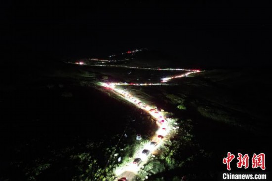 6月8日凌晨,蜿蜒崎嶇的盤山路,祭祀敖包的隊(duì)伍宛若游龍。 崔博群 攝