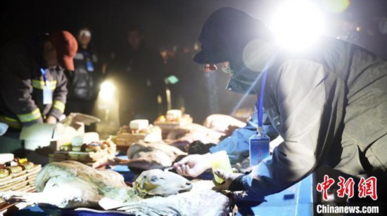 6月8日,工作人員正在做祭敖包之前的準(zhǔn)備工作,為羊頭點(diǎn)黃油。 崔博群 攝