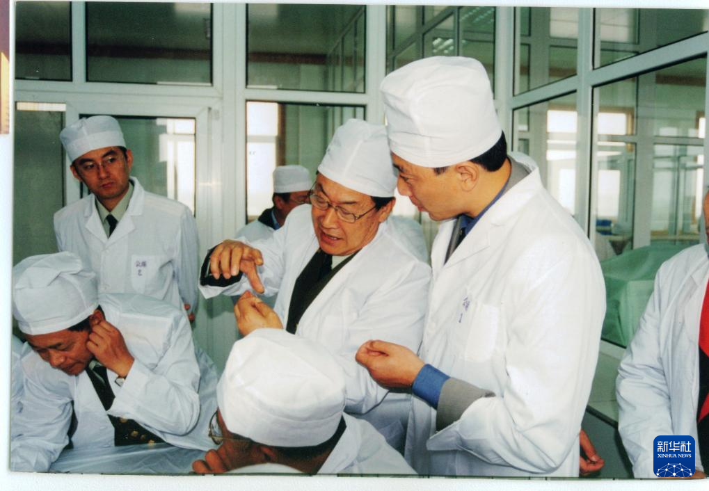 王永志(右二)深入載人航天工程研制一線。新華社發(fā)(資料照片)