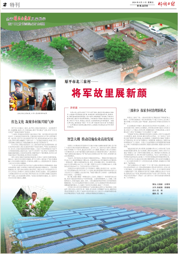 今年以來,我市以踐行“千萬工程”經(jīng)驗、推進鄉(xiāng)村全面振興為抓手,以精品示范村建設為引領,加快農(nóng)村人居環(huán)境整治步伐,推動水、電、路等基礎設施向村覆蓋、向戶延伸;積極調(diào)整產(chǎn)業(yè)結(jié)構(gòu),不斷壯大集體經(jīng)濟;探索鄉(xiāng)村治理新模式,不斷推進鄉(xiāng)村振興建設邁上新臺階,書寫了產(chǎn)業(yè)興、環(huán)境美、民風淳、生活好的和美鄉(xiāng)村新篇章。本報從即日起,陸續(xù)推出“踐行‘千萬工程’經(jīng)驗忻州在行動”系列報道——全市精品示范村風采展示特刊,讓精品示范村成為全市鄉(xiāng)村學習的標桿。