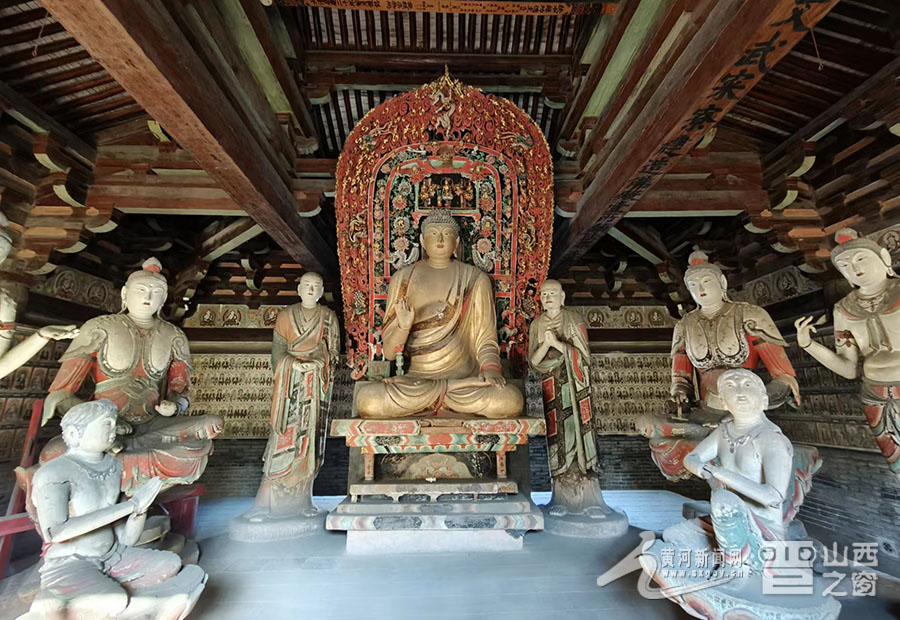 鎮(zhèn)國寺和雙林寺都是平遙縣內(nèi)世界文化遺產(chǎn)的重要組成部分。鎮(zhèn)國寺位于平遙縣東北的郝洞村,初名“京城寺”,明嘉靖時改稱“鎮(zhèn)國寺”,現(xiàn)存寺院共有兩進院落,坐北朝南,從前至后沿中軸線建有天王殿樓等主要建筑。其中,位于寺院中部的萬佛殿建于北漢年間,是中國現(xiàn)存最古老的木結(jié)構(gòu)建筑之一,被稱為“千年瑰寶”,是中國佛教寺院中現(xiàn)存的三處五代建筑之一,其中的彩塑,更是全國寺廟殿宇中保存至今的唯一五代作品。