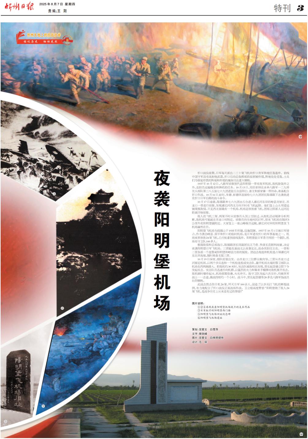 陽明堡飛機(jī)場為閻錫山于1935年所建,設(shè)施簡陋。1937年10月1日被日軍侵占,作為襲擊崞縣、原平和忻口的臨時(shí)機(jī)場,是日軍進(jìn)攻忻口的軍事基地之一。機(jī)場夜里停放24架飛機(jī),白天輪番到前線轟炸。陽明堡駐日軍香月師團(tuán)一個(gè)聯(lián)隊(duì),機(jī)場有守衛(wèi)隊(duì)100多人。