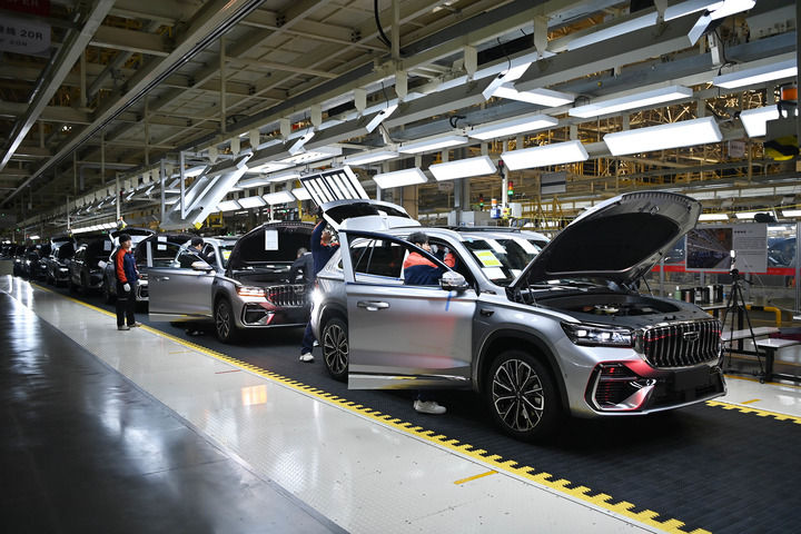 這是2025年10月27日拍攝的西安吉利生產(chǎn)基地總裝車間。新華社記者 肖瀟 攝